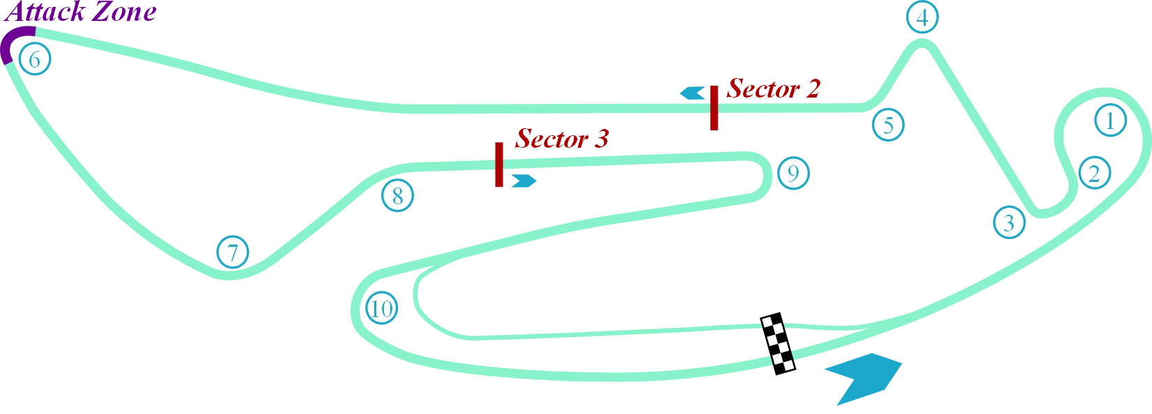 Massa went next and would do his best to gather speed at the start of the lap, taking a wide line through turn ten in order to get a better exit onto the start/finish straight.[9] Unfortunately the Brazilian racer would undermine a strong first sector with minor mistakes at turns six and nine, leaving him in third at the end of his run.[9] de Vries went next and put together a very aggressive lap, almost matching da Costa in the first sector, only to lock up in turn six on the bumps and lost time, dropping to third.[9]
